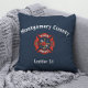design de na moda para bombeiros e suas famílias, apresenta o logotipo do corpo de bombeiros genérico vermelho em fundo azul escuro. Personalizar com detalhes do departamento da cidade ou do condado ou nome de bombeiro em fonte branca moderna