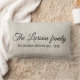 Este é um grande travesseiro que diga a família estabelecida e então uma data. Tem a rotulação preta em um tecido de linho bege do olhar. Você pode facilmente mudar o nome e usar-se que nunca a pia batismal, a cor e o tamanho que você prefere.