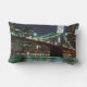 A ponte de Brooklyn famosa e fabulosa em um travesseiro. Ambos os lados têm imagens coloridas diferentes da ponte de Brooklyn e do centro de NYC na noite.