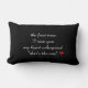 Um travesseiro decorativo preto com as palavras "a primeira vez que te vi o meu coração sussurrou "é esse" e um pequeno coração vermelho. Projetado por Robin D. Cox.