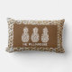Três abacaxis acentuam esta almofada lombar, ótima para sua casa ou um presente para um novo proprietário personalizado com o nome de sua família em um padrão de impressão em madeira tecido. (Não é madeira real, é uma ilustração impressa em cores vibrantes.)