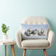 Este travesseiro decorativo decorativo apresenta seis cinzas e gaivotas brancas reunidas na costa em um dia ensolarado. A imagem é repetida no verso.