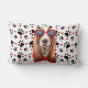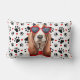 Um maravilhoso travesseiro lombar para combinar com nossas versões quadradas e apimentar a vida do amante do cão Basset Hound. Um fundo de estampas pretas e corações vermelhos em branco.