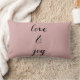 Uma bonito e elegante tipografia pincelou travesseiro rosa com o ditado amor e alegria.