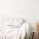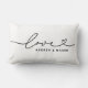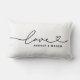 O design de travesseiro decorativo lombar personalizado moderno e na moda apresenta um design de tipografia simples e mínimo de "Amor" que inclui detalhes florescentes e cardíacos. Personalize o texto maiúsculo abaixo com um monograma para um casal ou família, uma citação ou outro texto preferido. As cores preto e branco podem ser modificadas.