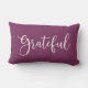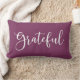 Um simples travesseiro decorativo moderno com a palavra grata sobre um fundo colorido de ameixa. Uma boa adição à sua decoração de Ação de Graças. Vem em uma variedade de cores. Projetado para você pelo Blackberry Boulevard.