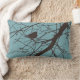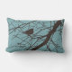 Disponível no estilo e no quadrado "lombares", este travesseiro caracteriza uma silhueta de um pássaro pequeno da toutinegra, empoleirada em uma árvore desencapada do inverno. No marrom em um aqua - fundo azul.