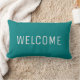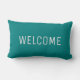 Travesseiro de boas-vindas moderno azul-rústico. Você pode mudar o texto facilmente.