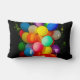 Um aglomerado de balões brilhantes e coloridos de brinquedos contra o fundo da floresta escura. Fotografia texturizada.