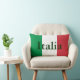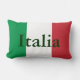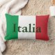 travesseiro decorativo lombar de 13" x 21" com uma imagem das cores da bandeira italiana e "Italia" impressa sobre ela em verde escuro. Verde atrás.