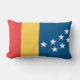Travesseiro com a bandeira de Durham, Carolina do Norte. Uma bandeira vermelha, amarela e azul com sete estrelas brancas