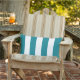 O design travesseiro exterior apresenta simplesmente um padrão de extensas faixas verticais de cabana brancas com um fundo azul verde e verde. Design clássico com qualquer estilo de decoração. A cor de fundo pode ser modificada.