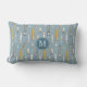 Decor perfeito do pátio para o acampamento de rios, esta visão de ave sobre o travesseiro náutico temido ao ar livre pode ser personalizada com qualquer cor de fundo e características de navios marítimos de tamanho variado, modelados num fundo azul com monograma personalizado num pingente azul escuro - o padrão inclui 3 cargueiros, um veleiro, um barco de cruzeiro, um barco de rodas de remo, um iate e um barco de pesca, verticalmente - No rio © katz_d_zynes 2019