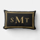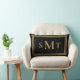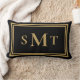 Create your own personalized monogram pillow. Features three letter initial in elegant gold typography on black background.