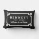 design lombar na moda apresenta um design geométrico geométrico branco grego-chave e um monograma que pode ser personalizado com um sobrenome casado ou familiar, data estabelecida (pode ser o ano de casamento ou o ano em que o primeiro filho foi nascer). Personalize o fundo preto para coordenar com a decoração ao ar livre.