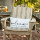 O moderno travesseiro de boas-vindas ao ar livre apresenta um simples design de tipografia preto e branco com "bem-vindo" e endereço personalizado apresentado em um roteiro preto moderno sobre fundo branco. Um travesseiro de boas-vindas minimalista projetado com texto personalizado mostrado com "bem-vindo" no script na moda. Você pode personalizar alterando a mensagem de boas-vindas e o endereço usando os campos fornecidos ou usar o botão "contate este designer" para obter ajuda. Para criar o seu próprio travesseiro de boas-vindas: 1. Selecione personalizar este modelo. 2. Substitua o texto. 3. Revise a design para dimensionar e posicionar. Um moderno travesseiro de boas-vindas ao ar livre para a sua varanda, um travesseiro de sotaque para a sua cadeira de pátio, ou um travesseiro decorativo moderno para o seu espaço exterior favorito.