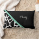 Um travesseiro lombar impressão de girafa entre preto e branco com uma faixa diagonal verde bonito de menta. Personalize este design de impressão de animais modernos adicionando seu nome. Personalize o verde da casa da moeda no verso com sua própria cor personalizada.