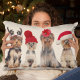 Este design de feriados bonitinho mostra os cachorros de Yorkshire Terrier vestindo diferentes chapéus de Natal com um padrão de tartã vermelho no reverso #natal #feriados #yorkies #yorkshireterrier #dog #throwpillows #cushions #christmas #christmasgifts #christmasdecor #homedecor