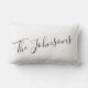 Travesseiro festivo de natal, com as palavras "lar doce lar", com a palavra "O" na frente, e no verso está o nome da família.