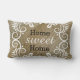 Travesseiro lombar home doce Home com um impressão rústico de serapilheira e um teste padrão floral decorativo.