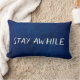 Amigável e convidando o texto "fique enquanto" em fundo azul escuro texturizado Pode ser editado.