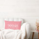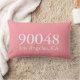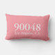 Este travesseiro moderno apresenta código ZIP personalizado, cidade e estado em cor branca em fundo rosa.