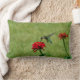 Travesseiro decorativo com um colibri rubi-throated bonito que alimenta em um zinnia vermelho com um fundo verde. Grande presente para um amante do pássaro! Fotografia de Digitas por Sue Melvin
