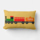 Comboios de brinquedo num travesseiro de algodão