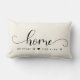 Moder, tipografia com script chic lendo design em CASA sobre suas coordenadas personalizadas. Excelente presente para Dia de os namorados, Dia de as mães, para recém-casados, ou para um lar. Tanto a na moda romântica quanto a moda, nosso travesseiro neutro de creme de marfim apresenta a latitude e a longitude de seu lugar especial em letras negras de serifa.