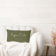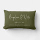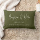 Almofada lombar de memórias de casamento com coordenadas personalizadas em tipo de letra moderno, apresentando suas coordenadas e data de casamento escolhidas, nomes dos cônjuges em fonte moderna e casual em um fundo verde escuro. Ótimo presente de casamento ou de aniversário de casamento.
