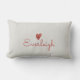 Um travesseiro lombar de uma garota fofa para seu quarto ou decoração do dormitório com seu nome no rabisco e uma mão vermelha pintada de coração. Um grande presente na escola.