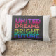 A design da camiseta apresenta o texto "O Futuro Brilhante dos Sonhos Unidos" em um vibrante gradiente do arco-íris, começando do roxo e terminando em rosa. O texto é colocado sobre fundo preto e é apresentado em caracteres modernos e geométricos. O design transmite uma mensagem de esperança, unidade e otimismo, com as cores que simbolizam a diversidade e a inclusão.