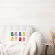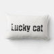 Coussin rectangulaire avec des maneki neko de différentes couleurs sur fond blanc et l'inscription Lucky cat au verso