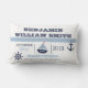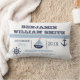 Esta característica do travesseiro da comemoração do nascimento um barco de vela, uma âncora, uma corda e um leme bonitos. O design igualmente inclui uma luz - faixa azul e algumas linhas de divisão. A parte traseira do travesseiro caracteriza um teste padrão azul e branco listrado da luz - e uma âncora. O travesseiro está pronto para ser personalizado e é ideal como um travesseiro da comemoração do nascimento do berçário e é particular apropriado para uma sala náutica do tema.
