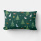 Um travesseiro bonito com pratas brincalhonas, dalmatianos e westies cercados por flocos de neve, abeto decorado e presentes festivos. A design, colocada contra um fundo verde, traz uma atmosfera de Natal alegre a qualquer lugar.