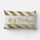 Este elegante travesseiro de Natal foi desenhado com texto festivo dourado: Feliz Natal, num fundo branco, com listras douradas. Faz um presente de excelente, ou como adição ao seu Decor Doméstico de Férias.