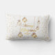 Saudações aos seus convidados, amigos e família com este Travesseiro de Natal da na moda e da Holiday Season, moderna, com um bonito e falso guião manuscrito de ouro, com a citação "Feliz Natal" num fundo elegante e branco, com um confete de ouro. Adicione facilmente a sua família ou o nome da empresa para personalizar o modelo de texto.