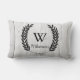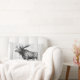 Os alces que detalhados o esboço em um branco lavou as pranchas de madeira imprimem sobre a face frontal do travesseiro. A parte traseira do travesseiro caracteriza um quadro preto da grinalda dos louros que contem sua escolha da letra do monograma e do nome de família personalizados no texto preto.