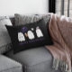 Elevem a vossa decoração de Halloween com este travesseiro decorativo fofo com uma amigável trio fantasma, morcego e aranha. A frase é personalizável na frente. A parte de trás é preto comum com texto personalizável de script em branco.