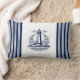 travesseiro lombar náutico com faixa azul marinho com crachá de farol. Design de aparência clara e fresca para decoração náutica e costeira. Para todos os marinheiros e todos, que amam náutica, costeira, Nova Inglaterra, Hamptons, Estilo Nantucket.