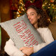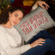 Esta design apresenta tecido rústico e ensurado com o texto moderno "Felizes Feriados" em tipografia popular vermelha e branca. Perfeito para a Estação Festiva. #feriados #natristmas #decor #rústico