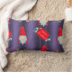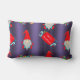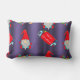 Uma almofada de Natal muito bonita para decorar sua casa durante as próximas férias. Este lindo padrão de gnomos e elfos de Natal tem meias de Natal e a saudação, "Feliz Natal", com caramelos vermelhos, todos com um fundo roxo.
