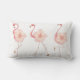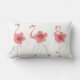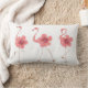 Travesseiro lombar branco com Flamingos cor-de-rosa e flores de Hibiscus.