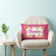 Padrão de xadrez rosa personalizado, flores enfiadas, cores primavera negrito. Moldura de design floral cor de rosa amarela e fuchsia. A decoração do quarto de crianças, travesseiro de berçário de meninas com nome.