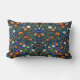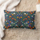 Este é um travesseiro lombar com fundo escuro e muitas flores coloridas selvagens.