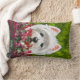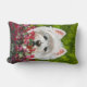 West Highland White Terrier e flores rosa. Cachorro ocidental a espreitar por um arbusto florescente. Sophie. Copyright © 2025 Angi Laframboise. Dons de cães de arte para amantes de cães.