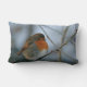 Travesseiro vermelho da foto do pássaro do peito do pisco de peito vermelho europeu bonito.