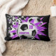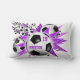Travesseiro lombar de estrela de futebol feminino com explosão de bolas de futebol e formas de estrelas roxas e cor-de-rosa num fundo preto personalizável - personalize com o seu nome e número de camisa ~ katz_d_zynes