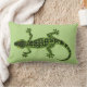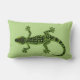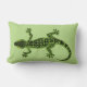 Travesseiro decorativo com um geco verde bonito com os olhos amarelos brilhantes.