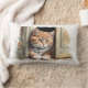 Trabalho de arte de aquarela de um gato gengibre giro em uma porta com flores. A cor de fundo pode ser alterada.